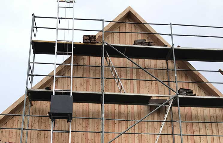 Giebelbekleidung mit Lärchenschalung an einer Scheune