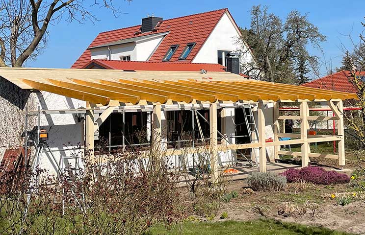 Herstellung einer Terrassenüberdachung aus Fachwerk